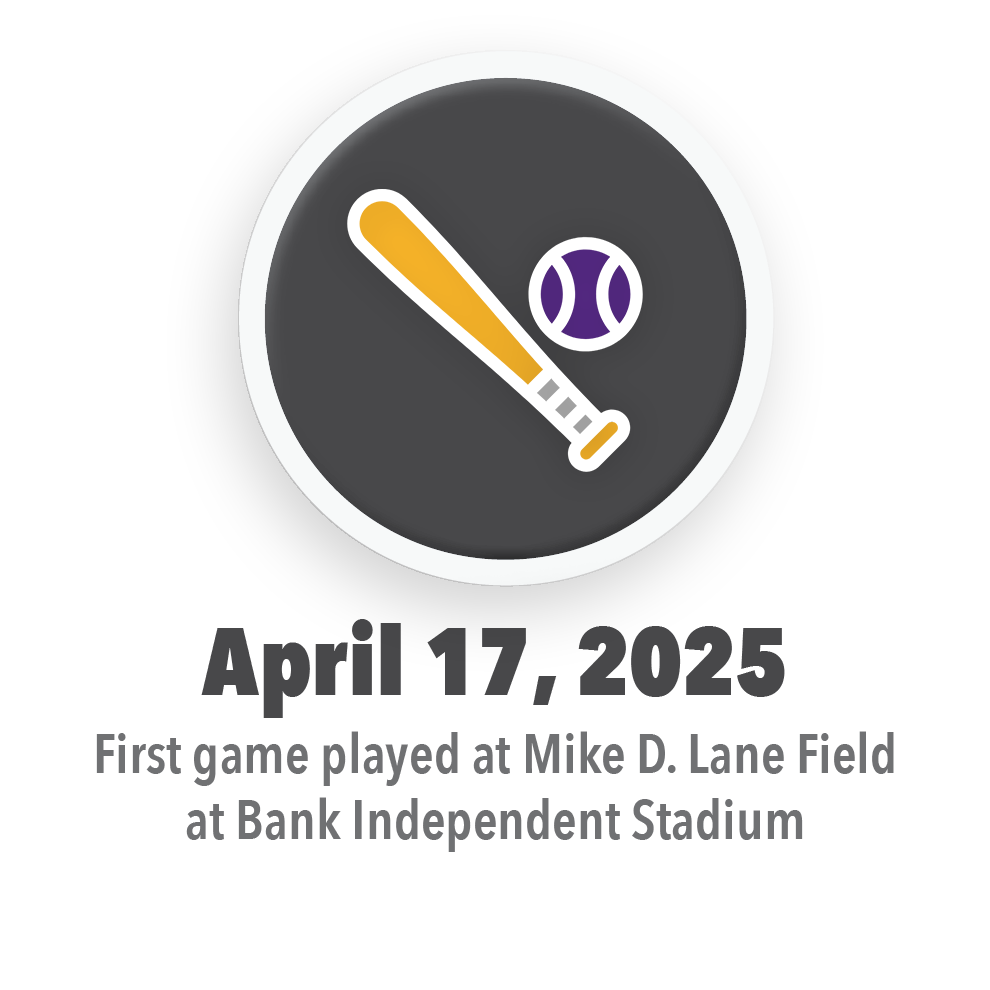 Construction at the Bank Independent Stadium began in June of 2024, with groundwork for the entire stadium site and construction of the new baseball facility leading the first phases of site redevelopment. Turf, bullpens, and outdoor hitting facilities at the baseball facility are scheduled to be completed and available for UNA’s Baseball’s use in January of 2025, while construction continues on the site. Construction of the baseball stadium will be phased on a schedule that allows UNA Baseball to host home events beginning in March of 2025, while several elements beyond the outfield walls will conclude in 2026 alongside progress at other areas of the Bank Independent Stadium site.
