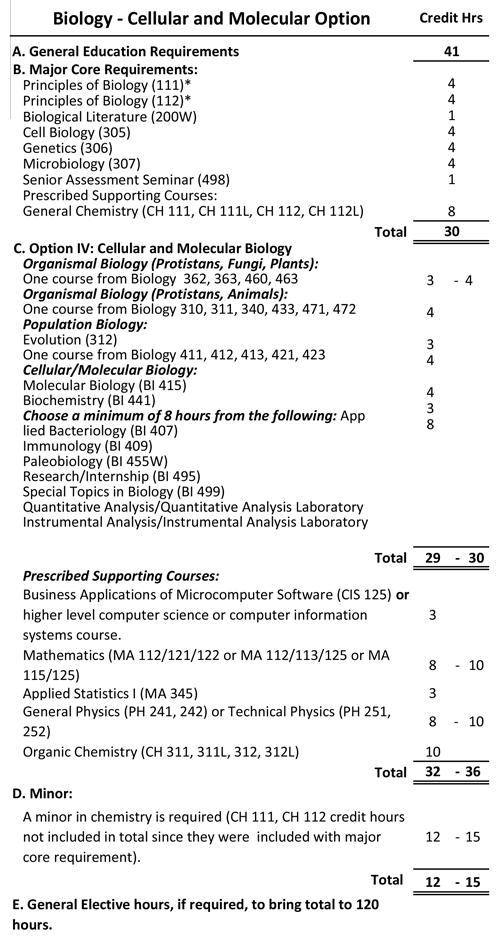 The cellular and molecular biology option is intended for students looking to prepare for entry-level positions in biotechnology, biochemistry, or medical research, or to pursue graduate studies in these areas. This option requires additional coursework in chemistry, biology, mathematics, and physics. Students are encouraged to collaborate with a faculty member to gain credit for research experience.