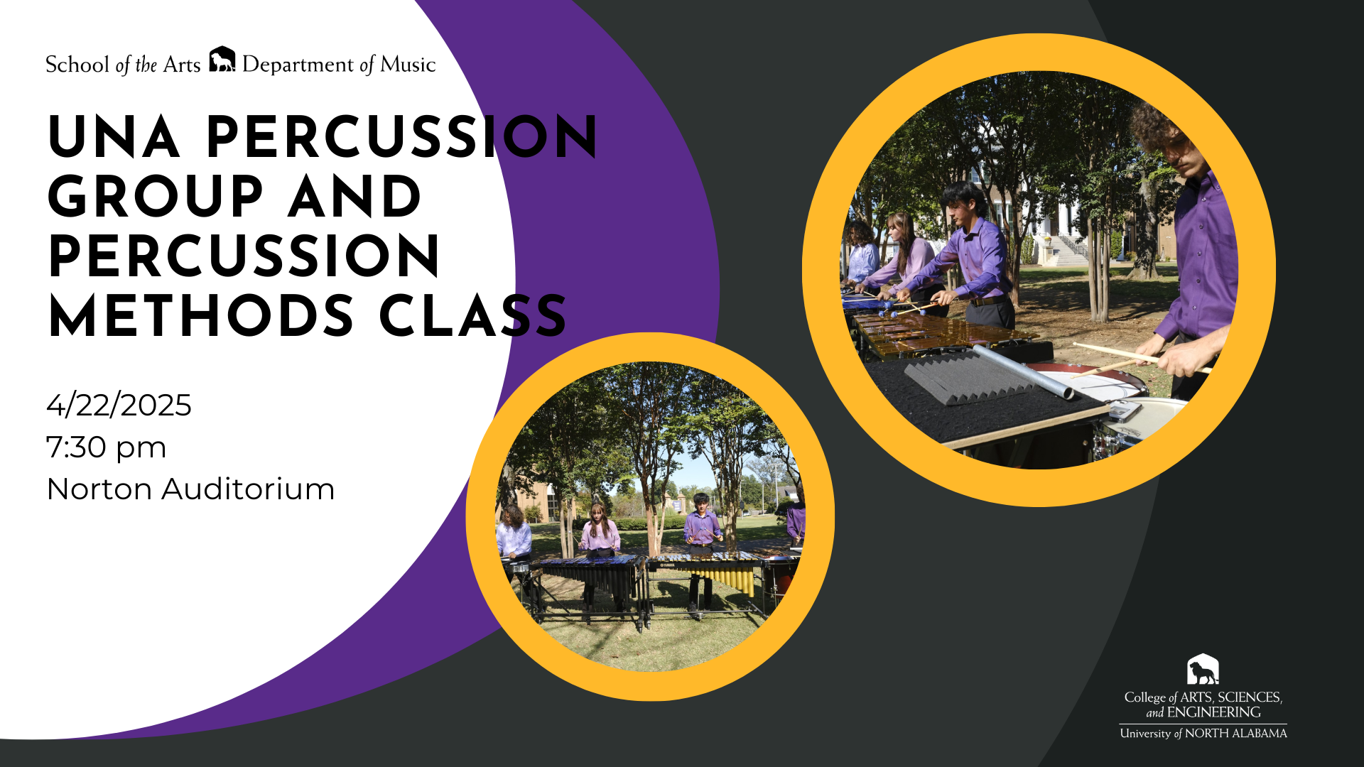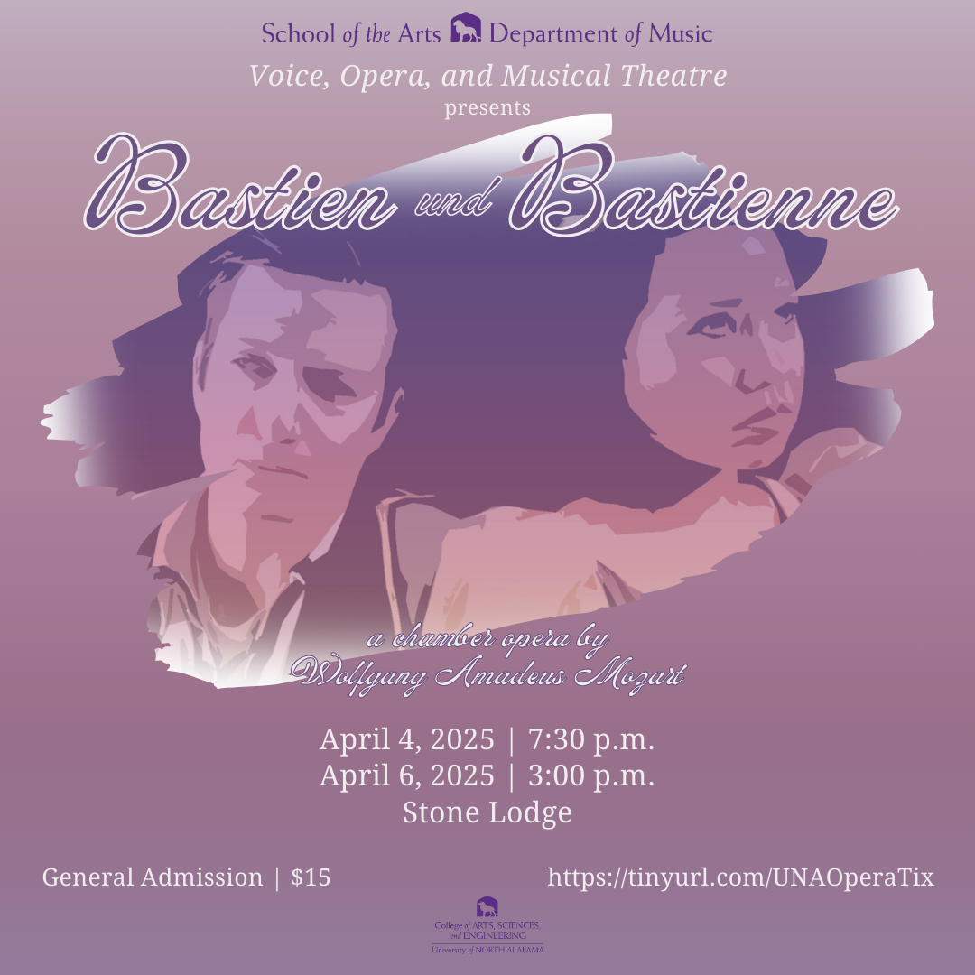 The UNA Department of Music offers multiple degrees and private study opportunities for students. Bolstered by superior performance ensembles and outstanding music faculty, the department provides students an outlet to IGNITE their passion for the arts with numerous opportunities to perform and connect with their fellow students and community. The Department of Music remains a consistent resource of excellence for the University of North Alabama, the Shoals Region, and beyond with its competitive scholarships, performance awards, and its status as a leader in the music education field. The University of North Alabama Department of Music is committed to providing diverse educational experiences that focus on academic excellence, professional-caliber creative performances, innovative curricula and pedagogies, community engagement, and equitable recruitment of students of outstanding potential regionally, nationally, and internationally. Take some time to browse around our site, and get started on your music journey today!