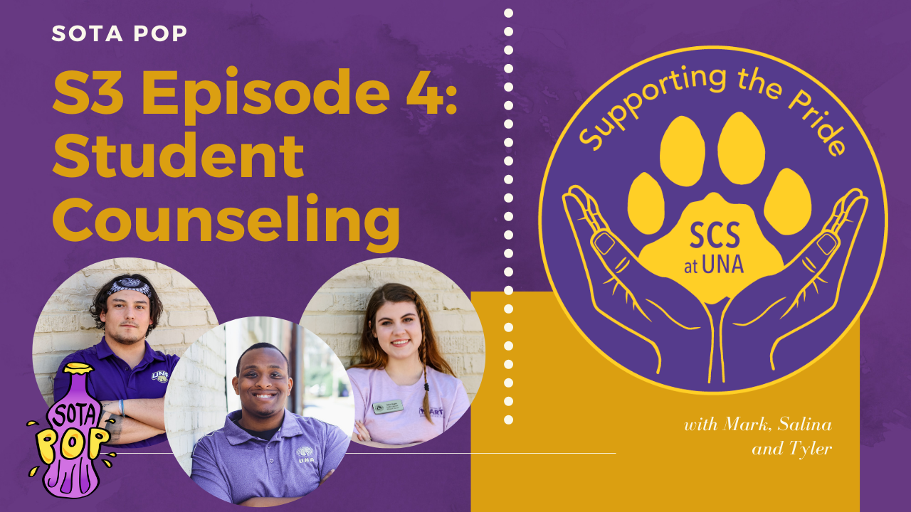Join Mark, Salina, and Tyler as they talk with Jennifer Berry from UNA's Student Counseling Services about the importance of mental health and the counseling resources UNA has to offer for ALL students.