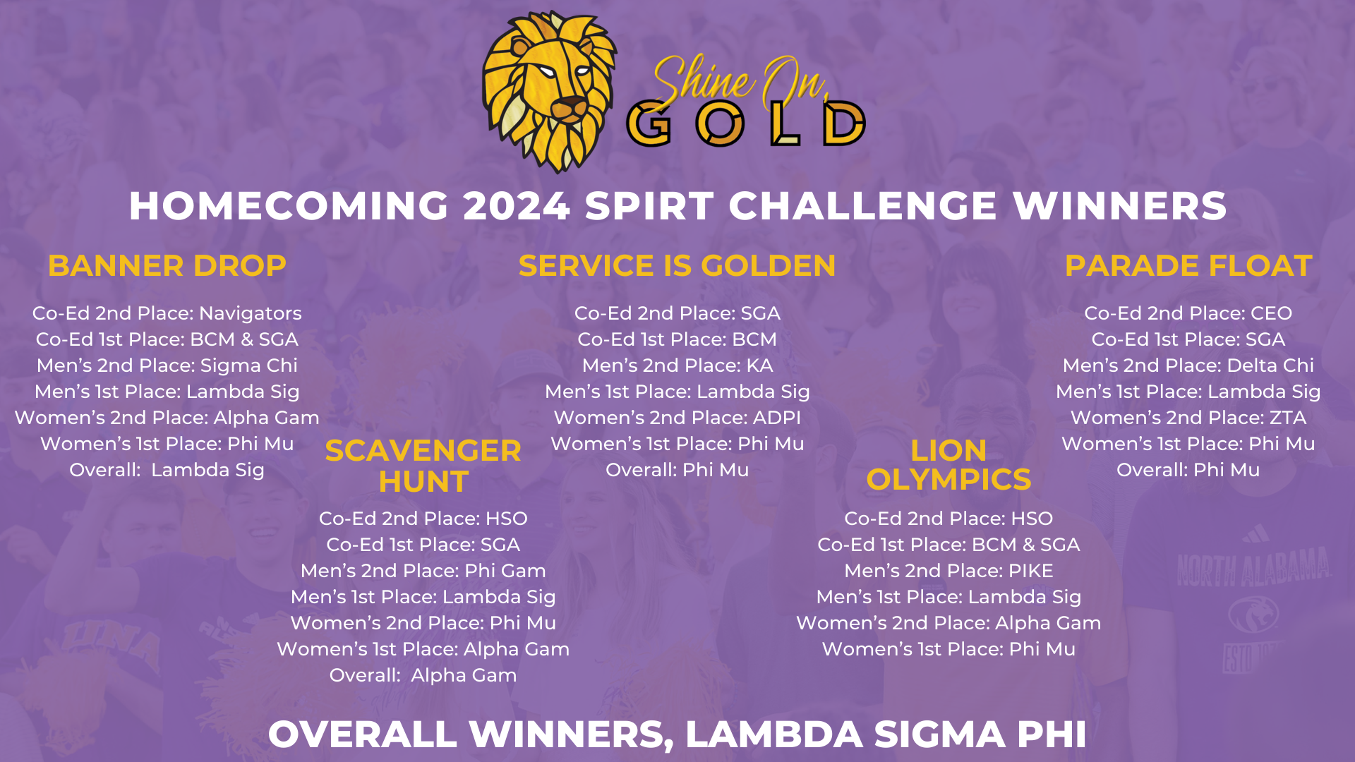 | Go For Gold Lion Olympics: Thur, October 16 following Pep Rally | CB&S Arena |