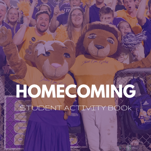 The Homecoming Student Activity Book includes the rules and regulations for the Homecoming Court nominations and elections, rules and regulations for the 2025 Homecoming Spirit Challenge, and extra information on student events occurring this Homecoming. Hard copies of this booklet will be available in front of the Center Student Engagement beginning mid September.