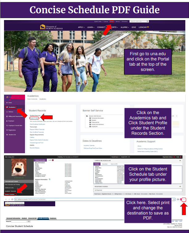 When downloading your concise schedule, make sure the drop-down bar near the top of your student profile reflects the semester you are submitting.